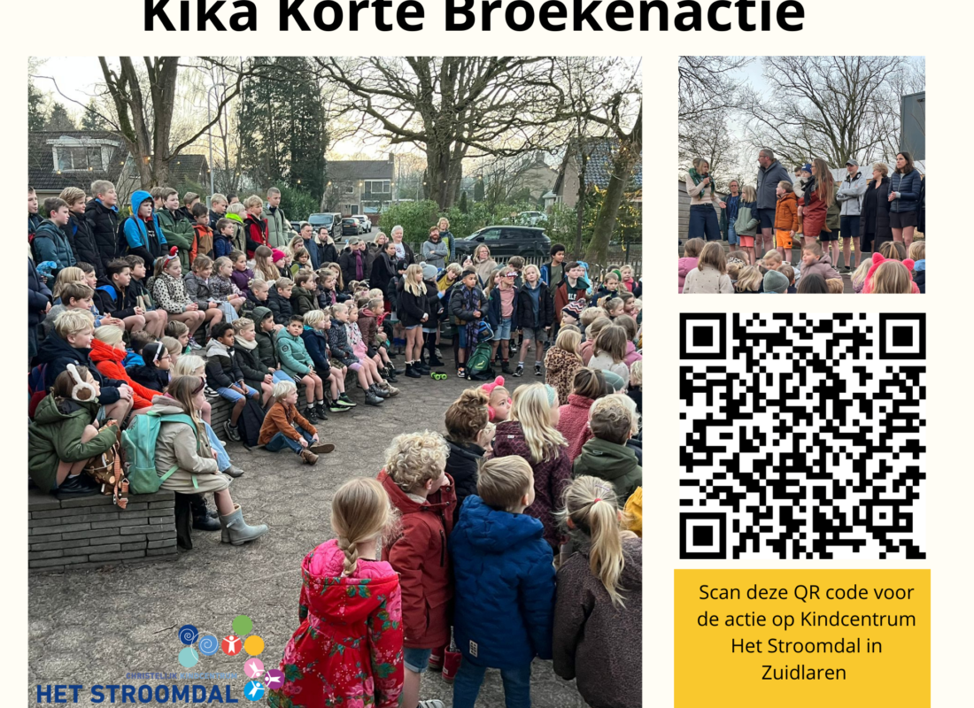 Onze kindcentra Het Stroomdal in Zuidlaren en De Borg in Assen doen mee met de Kika Korte Broeken week. Van 15 t/m 19 december dragen vrijwel alle kinderen, leerkrachten en ook veel ouders een korte broek om geld op te halen voor 100% genezing van kinderkanker. Voor Sam, het vierjarige broertje van Beau en Luc op Het Stroomdal, voor Lize uit groep 5b van De Borg en voor alle andere kinderen met kanker🧡.