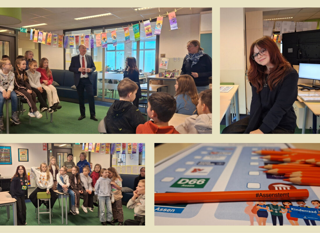 In aanloop naar de gemeenteraadsverkiezingen op 18 maart werd door de leerlingen van de groepen 6,7 en 8 van 18 basisscholen in Assen afgelopen woensdag een kinderverkiezing gehouden. Zo leren kinderen op een leuke manier over democratie, stemmen en de lokale politiek.